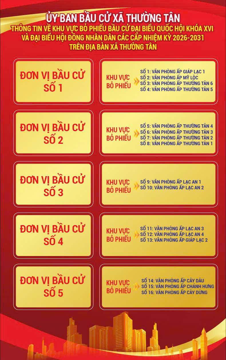Khu vực bỏ phiếu bầu cử Đại biểu Quốc hội khóa XVI và Đại biểu Hội đồng nhân dân các cấp nhiệm kỳ 2026 - 2031 trên địa bàn xã Thường Tân 08:16 03/02/20263 lượt xem In Nghe A Chia sẻ Tài liệu đính kèmCÙNG CHUYÊN MỤC