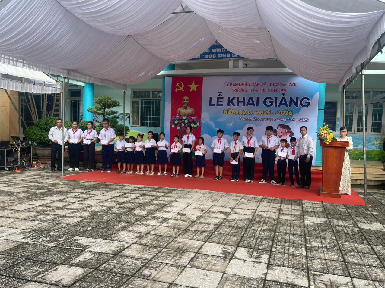 Trong dịp Khai giảng năm học mới Hội Khuyến học TP. HCM KV2 tài trợ Học bổng “Tiếp sức đến trường” năm học 2025-2026 trao tặng cho học sinh vượt khó học tốt của các trường tiểu học, TH-THCS trên địa bàn xã với 12 suất/60 triệu đồng. Công ty TNHH xây dựng và thương mại Hoàng Tín Nghĩa tài trợ 6 triệu đồng cho 10 trẻ có hoàn cảnh khó khăn của trường Mầm non Hiếu Liêm. Ngân hàng Vietcombank tài trợ cho học sinh khó khăn của 3 trường Tiểu học Hiếu Liêm, Mầm non Hiếu Liêm và Mầm non Hoa Anh Đào mỗi trường 5 triệu đồng. Hội Cựu học sinh của trường TH - THCS Lạc An hỗ trợ 20 suất học bổng/20 triệu đồng; Số tiền tuy nhỏ nhưng là nguồn động lực to lớn để học sinh trở thành những công dân hữu ích trong tương lai.