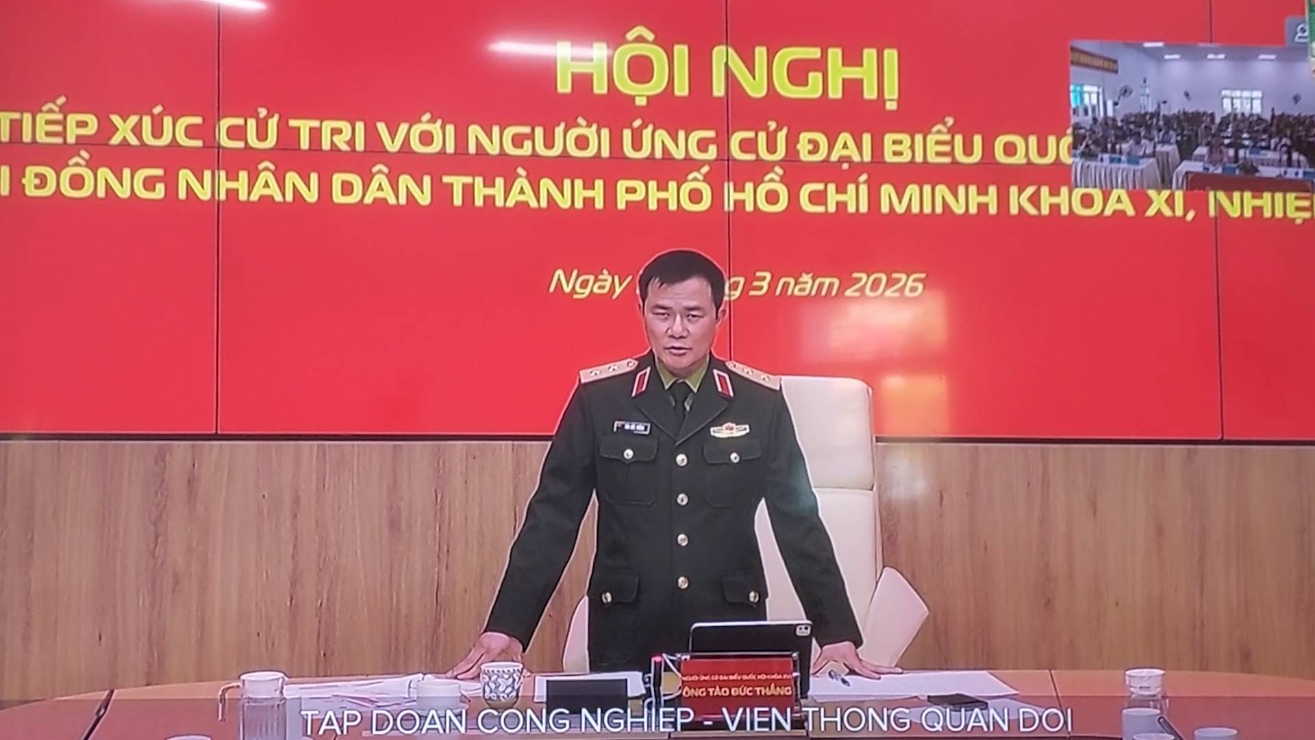 Ứng cử viên Đại biểu Quốc Hội, Trung tướng Tào Đức Thắng – Ủy viên Ban Chấp hành Trung ương Đảng, Chủ tịch kiêm Tổng Giám đốc Tập đoàn Công nghiệp – Viễn thông Quân đội