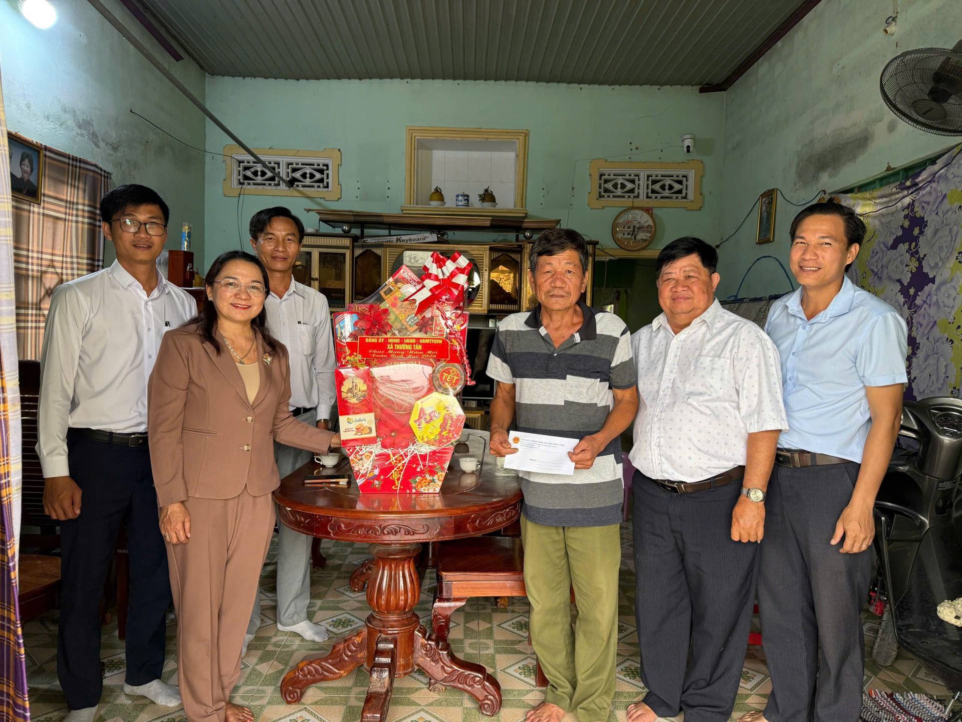 Cùng với Đoàn 1 do ông Nguyễn Thanh Lâm làm Trưởng đoàn, xã Thường Tân thành lập tổng cộng 7 đoàn công tác, với sự tham gia của Thường trực Đảng ủy, HĐND, UBND, Ủy ban MTTQ Việt Nam xã và các ban, ngành, đoàn thể, đồng loạt tổ chức thăm hỏi, tặng quà cho người có công với cách mạng và thân nhân người có công trên toàn địa bàn xã. Trong dịp này, xã trao 26 phần quà, mỗi phần trị giá từ 2-2,5 triệu đồng, gồm quà và tiền mặt, được trích từ Quỹ Đền ơn đáp nghĩa của xã, nhằm góp phần chia sẻ khó khăn, động viên tinh thần để các gia đình chính sách đón Tết Nguyên đán Bính Ngọ năm 2026 vui tươi, đầm ấm, nghĩa tình.