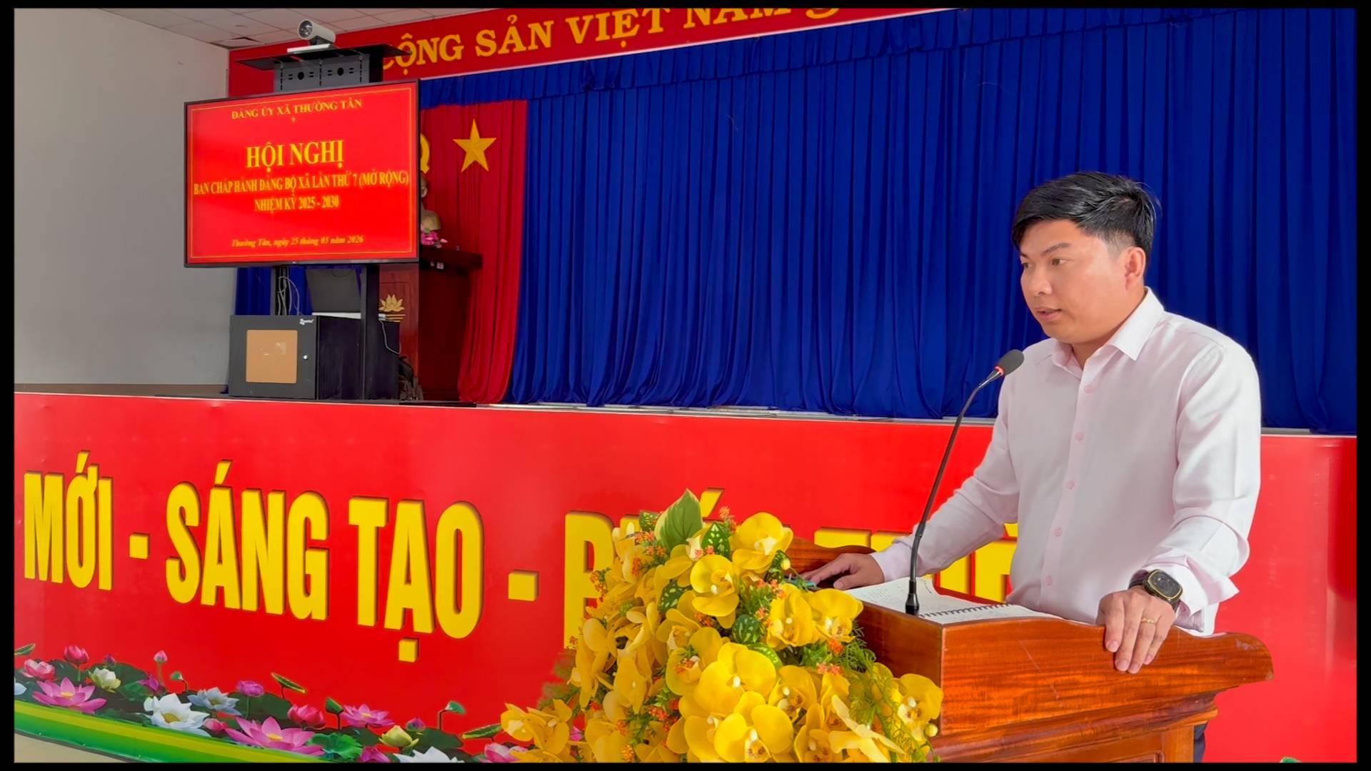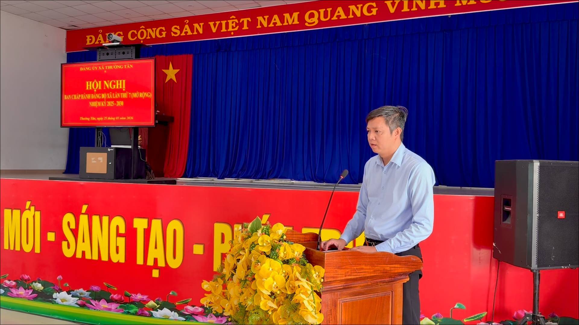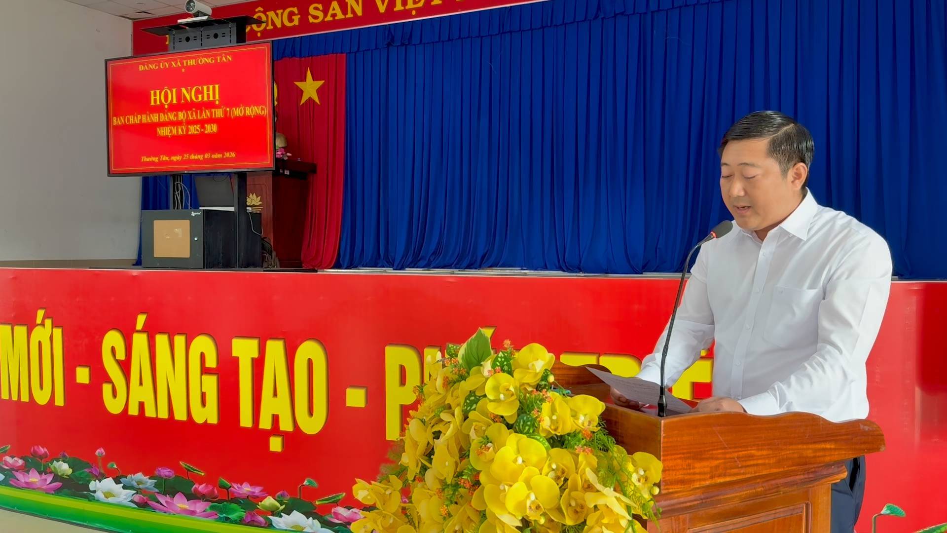 Sáng ngày 25/3/2026, tại Hội trường Đảng uỷ xã, Đảng ủy xã Thường Tân đã tổ chức Hội nghị Ban Chấp hành Đảng bộ xã lần thứ 7 mở rộng nhằm đánh giá toàn diện tình hình thực hiện nhiệm vụ trong quý I và đề ra phương hướng, nhiệm vụ trọng tâm quý II năm 2026.