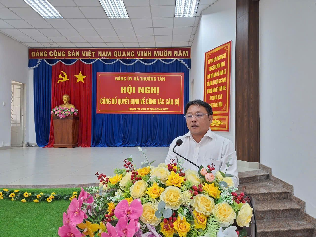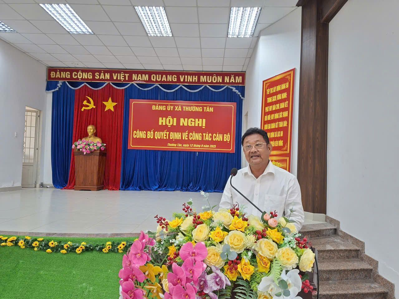 Sáng ngày 12/9/2025. Đảng ủy xã Thường Tân tổ chức hội nghị trao quyết định về công tác cán bộ. Tham dự hội nghị có đồng chí Nguyễn Thanh Lâm – Bí Thư Đảng uỷ - Chủ tịch HĐND xã; đồng chí Lê Huỳnh Lê – Phó Bí Thư Thường trực Đảng uỷ xã; đồng chí Đoàn Quang Cảnh – Phó bí thư Đảng uỷ, Chủ tịch UBND xã; đồng chí Phạm Ngọc Uy – UVBTV Đảng ủy, Chủ tịch UB MTTQVN xã; Các đồng chí Ủy viên BTV Đảng ủy, UVBCH Đảng ủy xã, cùng toàn thể các đ/c CBCC, người hoạt động không chuyên trách trên địa bàn xã.