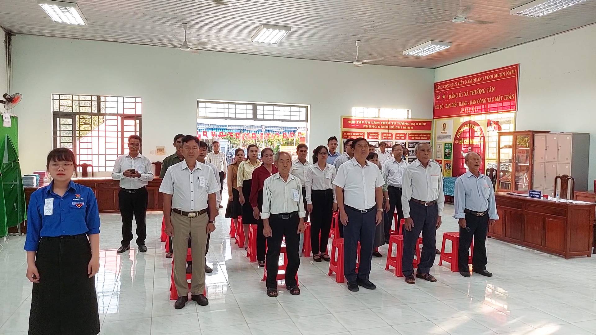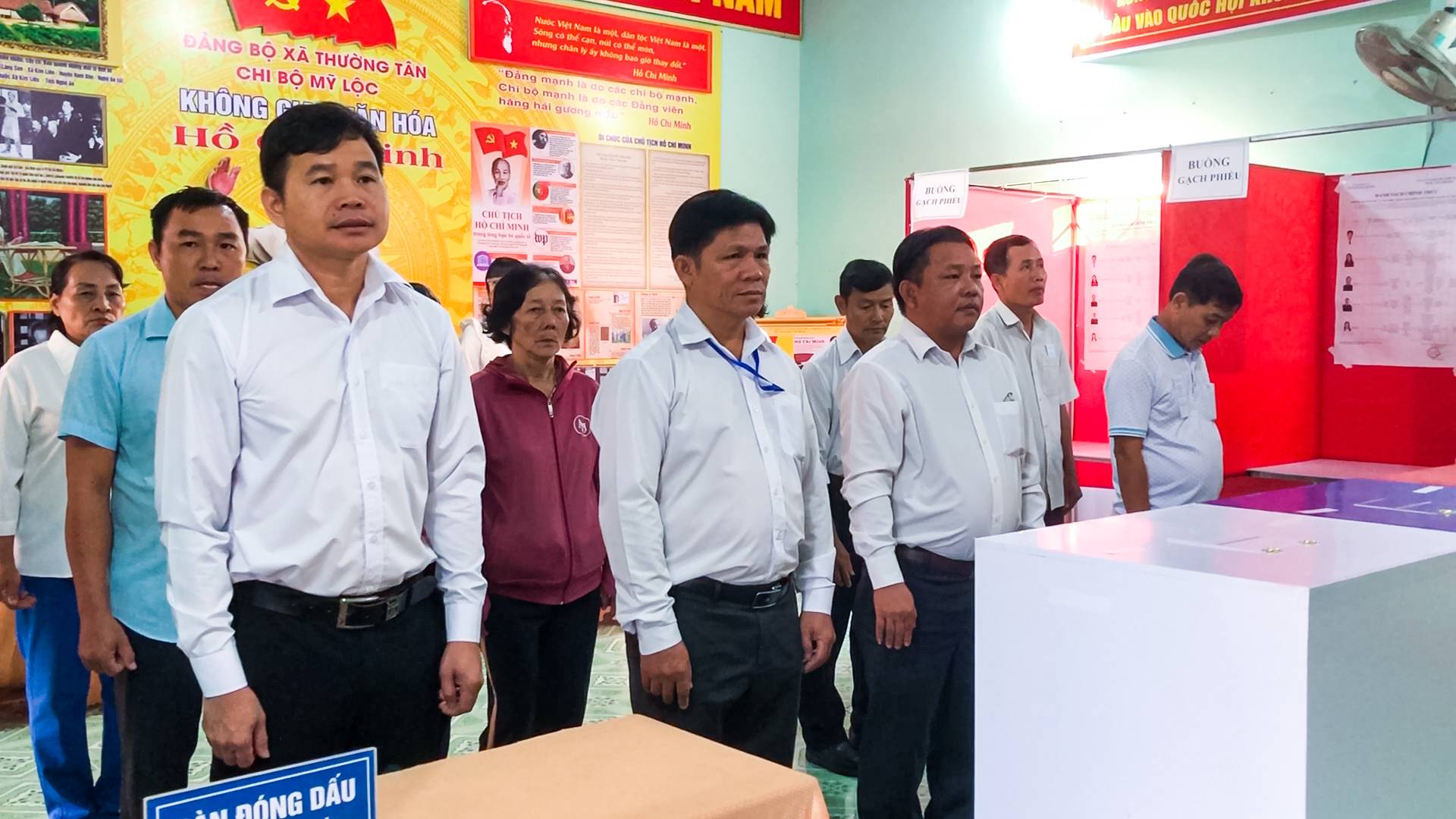 Tổ bầu cử tại Văn phòng ấp Thường Tân 1 – khu vực bỏ phiếu số 8, đơn vị bầu cử số 3