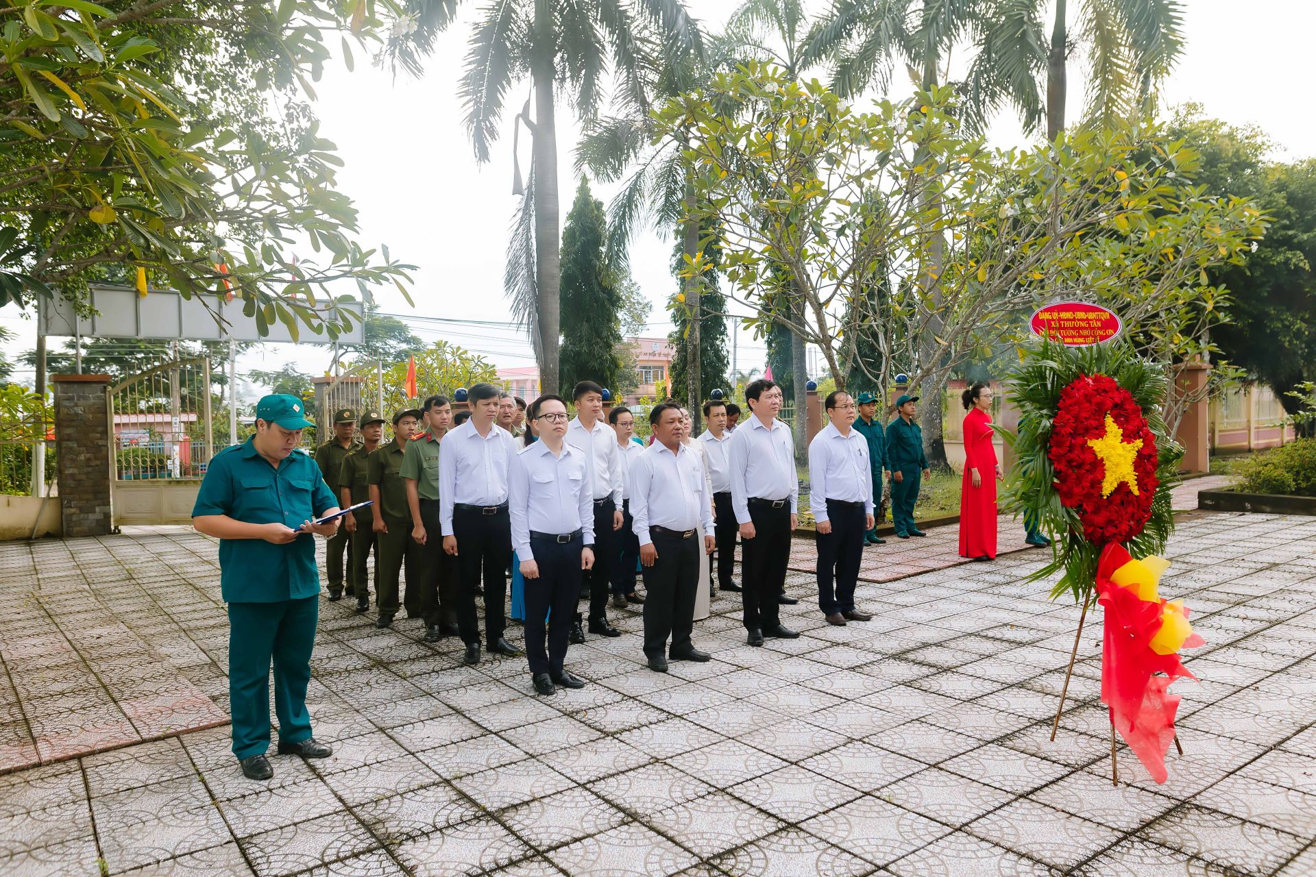 Trước khi buổi lễ kỷ niệm diễn ra, lãnh đạo địa phương đã viếng bia tưởng niệm các anh hùng liệt sĩ tại 3 nhà bia tưởng niệm trên địa bàn xã.