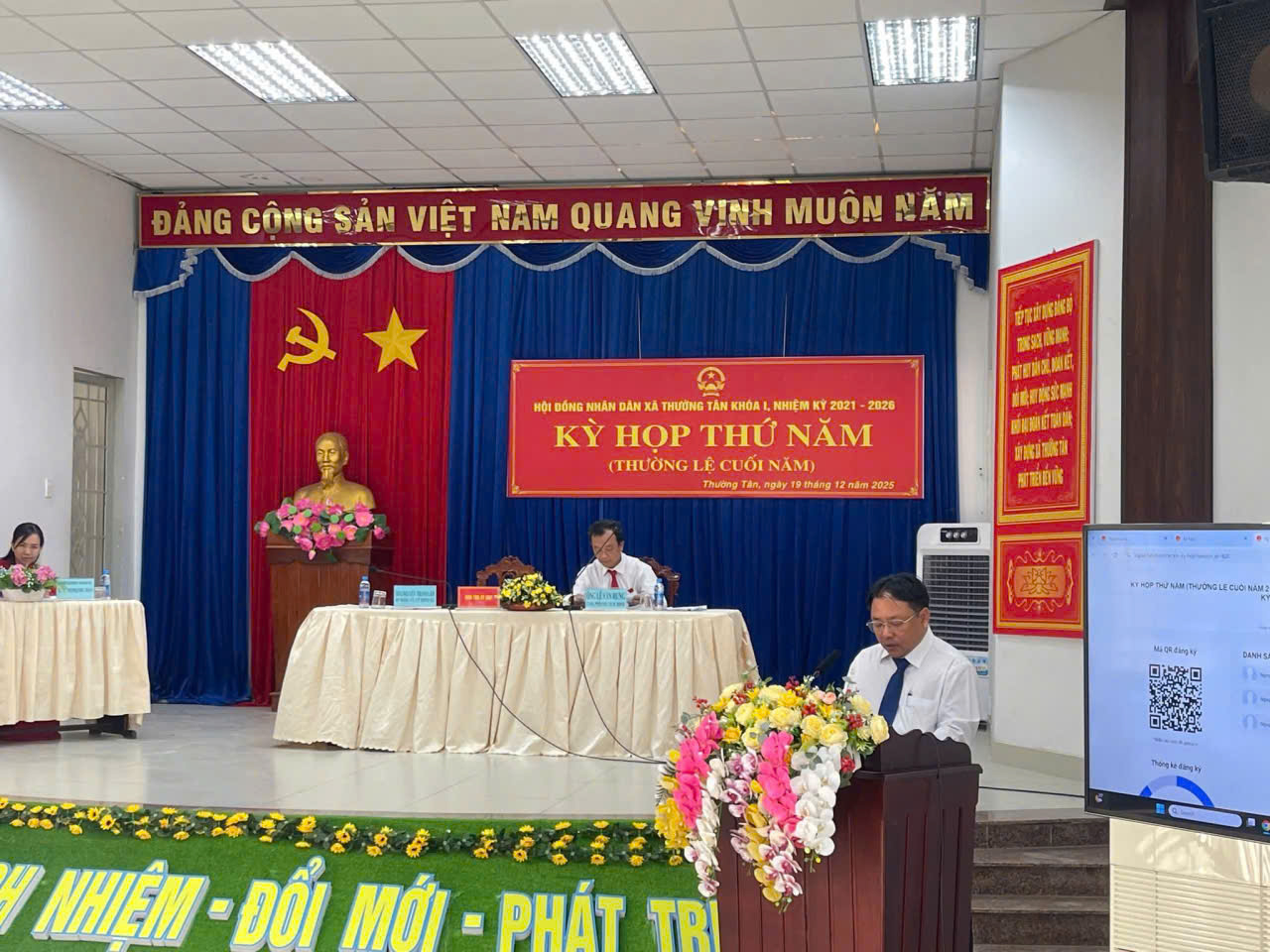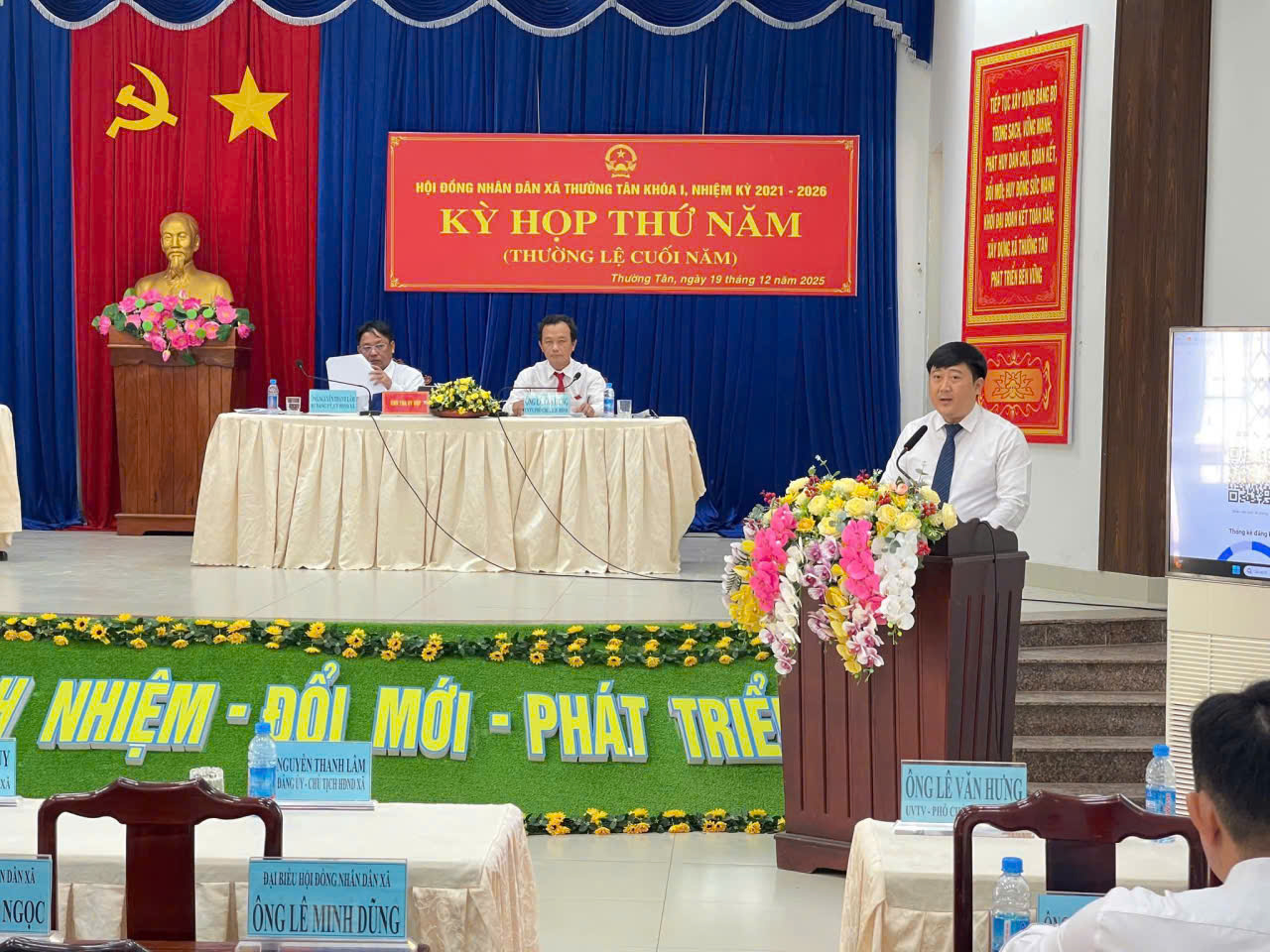 Sáng ngày 19/12/2025, HĐND xã Thường Tân khóa I, nhiệm kỳ 2021-2026 đã tổ chức Kỳ họp thứ năm - kỳ họp thường lệ cuối năm 2025. Tham dự kỳ họp có ông Nguyễn Thanh Lâm - Bí thư Đảng ủy, Chủ tịch HĐND xã, chủ tọa kỳ họp; ông Đoàn Quang Cảnh - Phó Bí thư Đảng ủy, Chủ tịch UBND xã; cùng các đồng chí trong Ban Thường vụ Đảng ủy, lãnh đạo các cơ quan, ban, ngành, đoàn thể và toàn thể đại biểu HĐND xã.